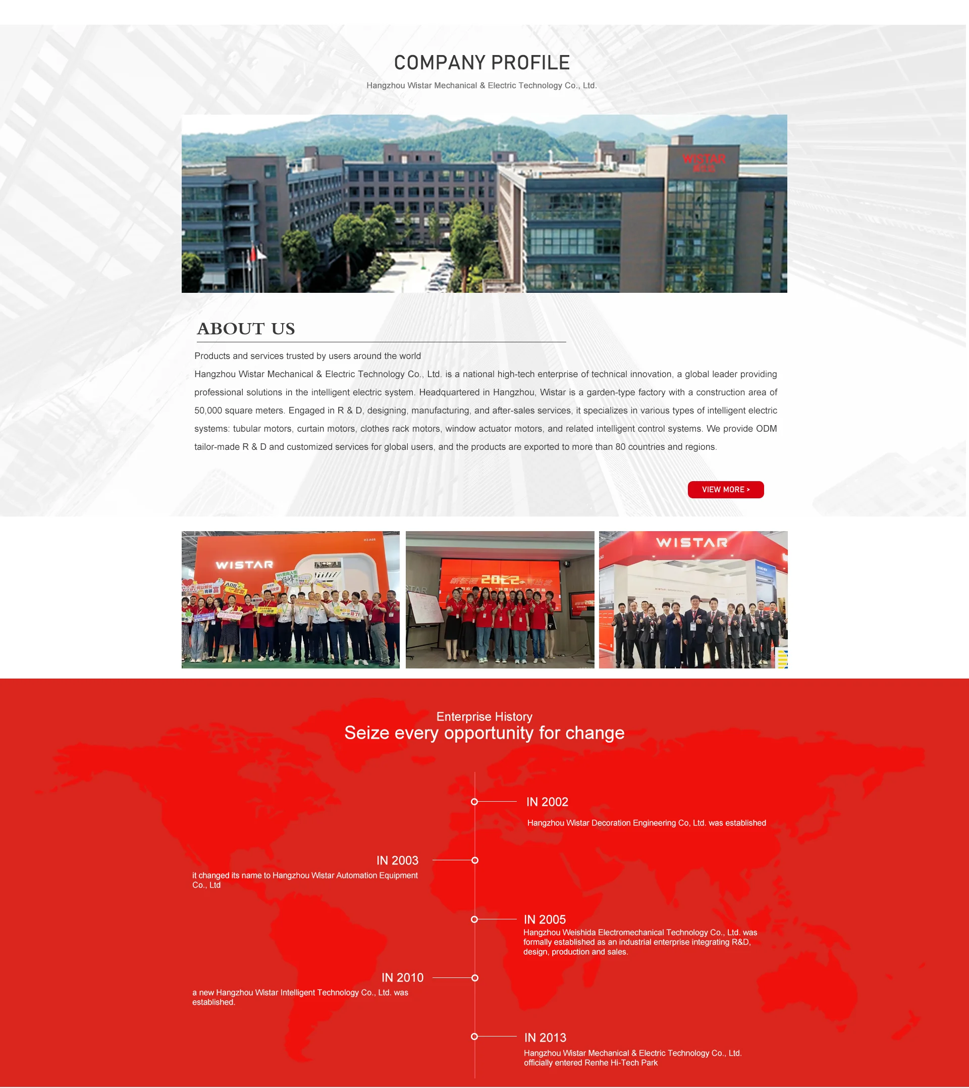 Productos principales:Motor tubular, Control remoto y receptor, Motor de cortina, Motor de cortina inteligente, Motor de persianas inteligentes